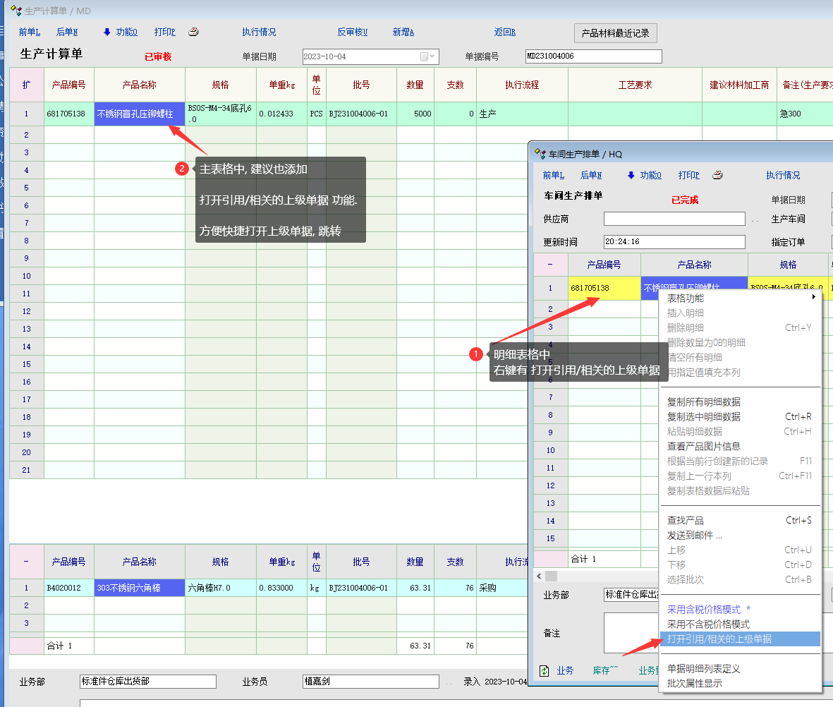 推荐_建议 主表格右键菜单中添加如明细表格中的 [打开引用/相关的上级单据] 功能_产供销