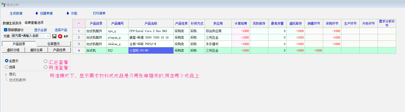 | 学习交流 » 产供销 »需求分析出来的结果,可否增加明细显示模式,以方便追查