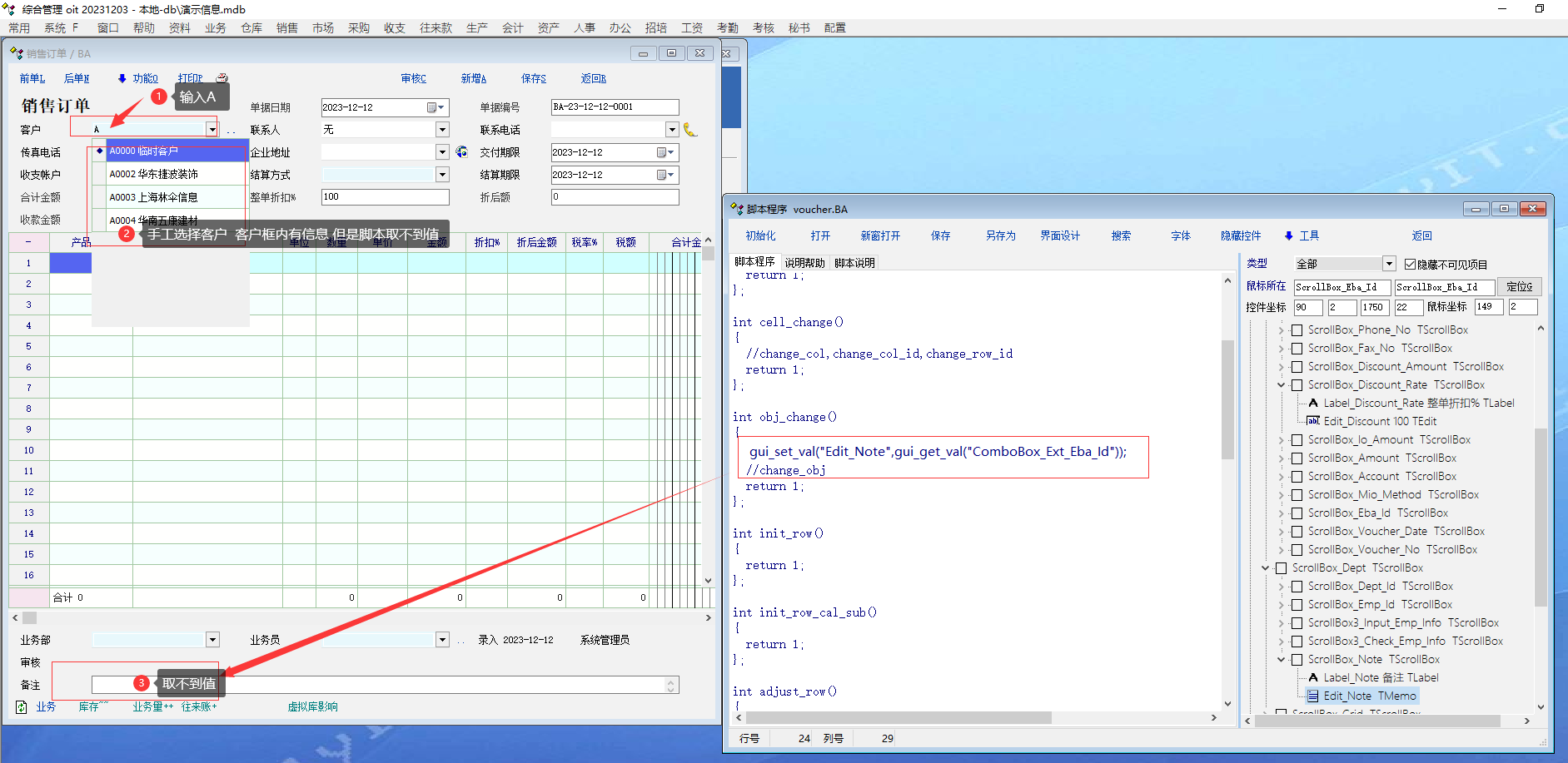 求助_新版 下拉框快速检索出 手工选择明细时 脚本无法取到值_产供销