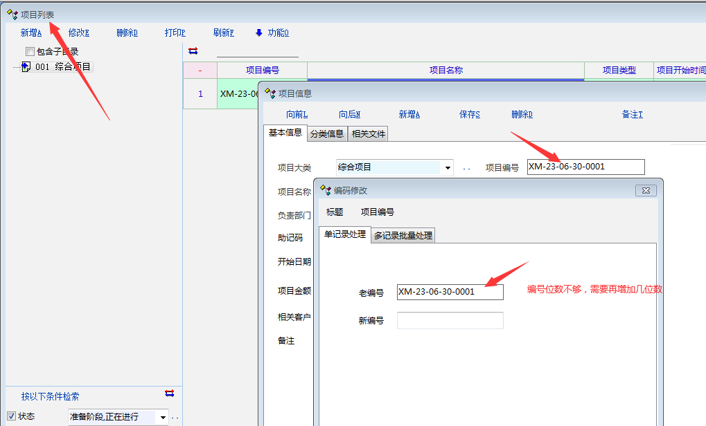 希望再增加项目编号位数,以便满足企业需求