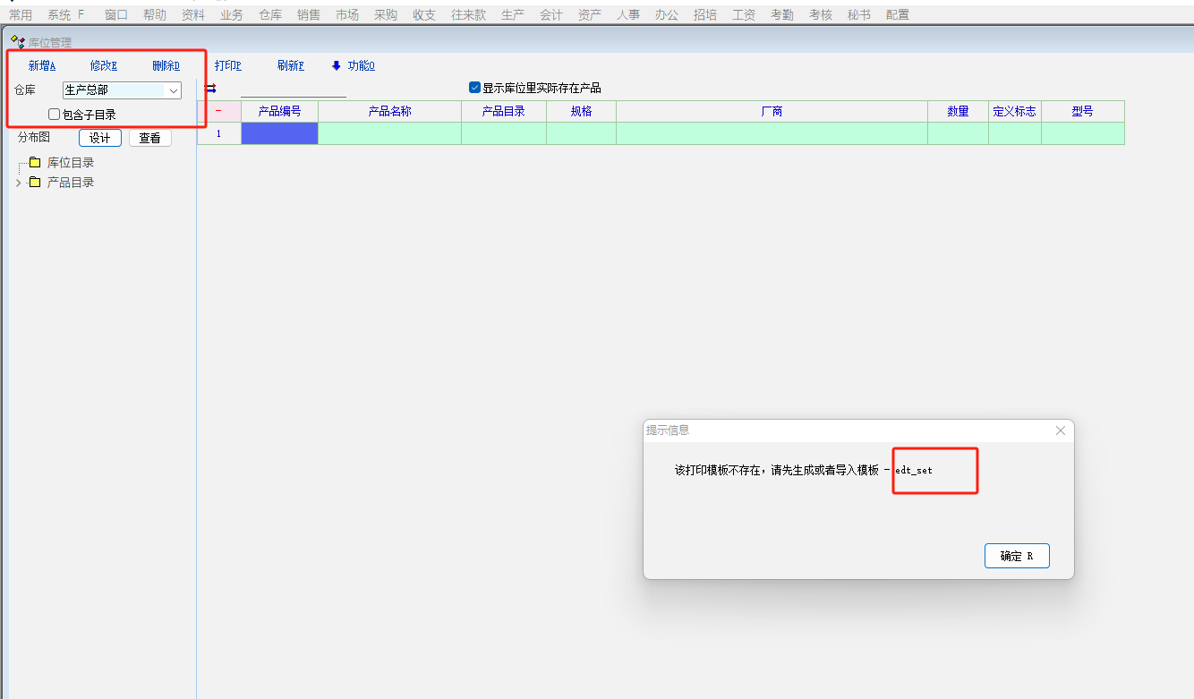 库位点击设计提示模版不存在,点击确认它只是关闭了弹窗,不会生成模版,只能在仓库下生成,但不同步到库位