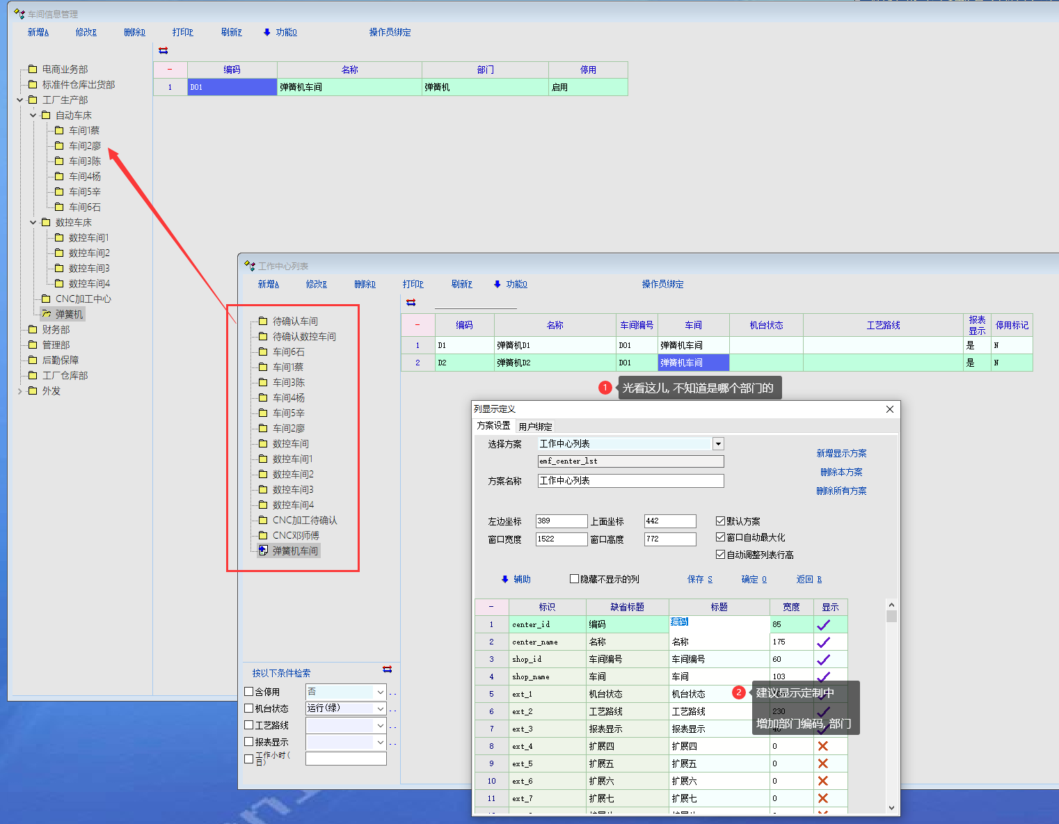 推荐_建议 工作中心 显示定制增加部门编码, 部门_产供销