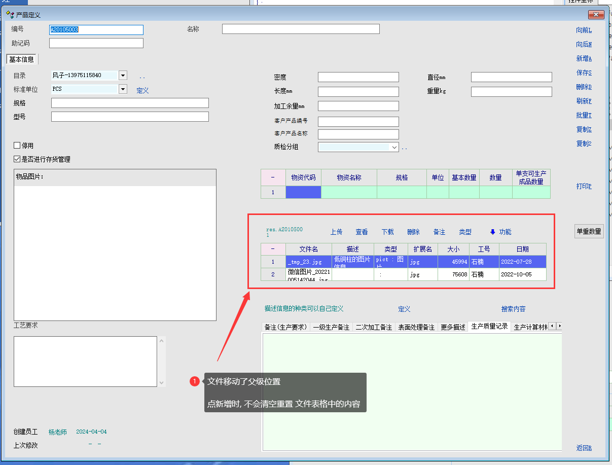 | 学习交流 » 产供销 »修复 产品卡片中, 文件 组件移动了位置 , 新增时不会清空数据