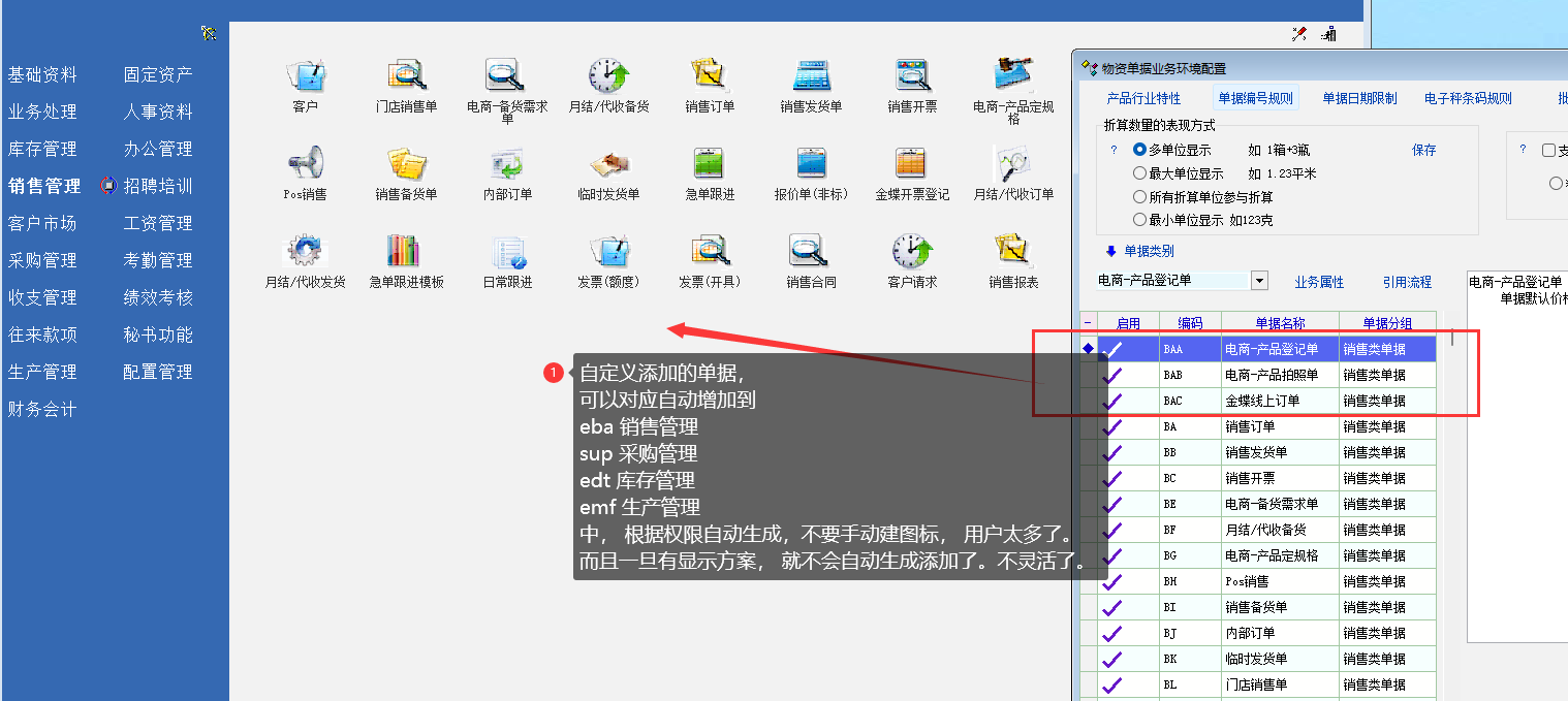 推荐_建议 环境配置中增加自定义单据类型 界面自动根据权限添加_产供销