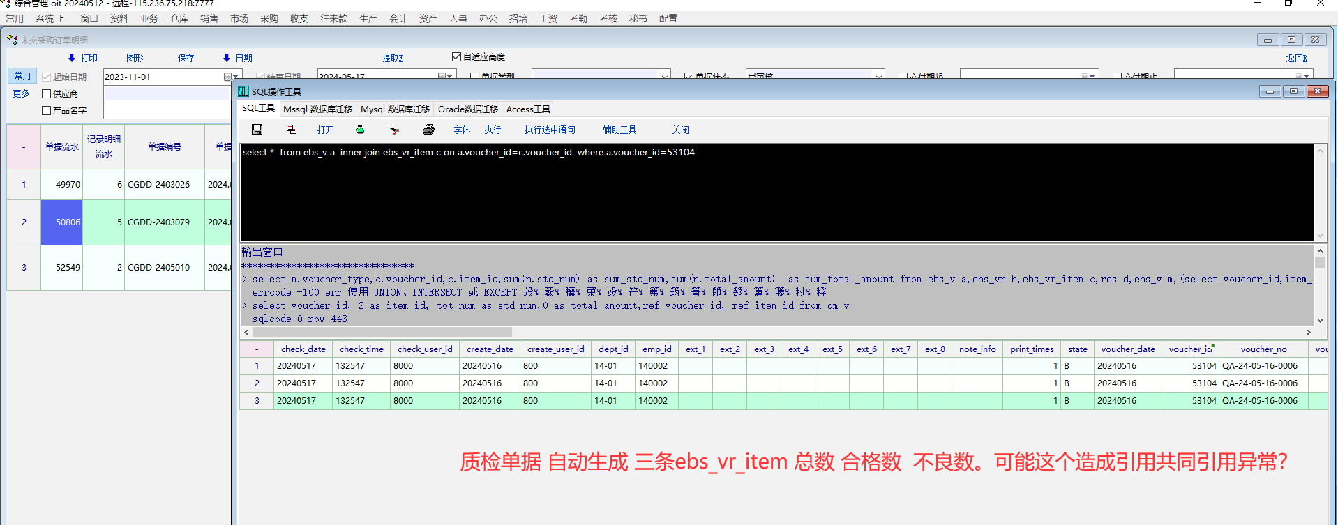 质检单自动生成三条 ebs_vr_item  单据明细记录  总数 合格数  不合格数  ,所以共同引用会造成异常?