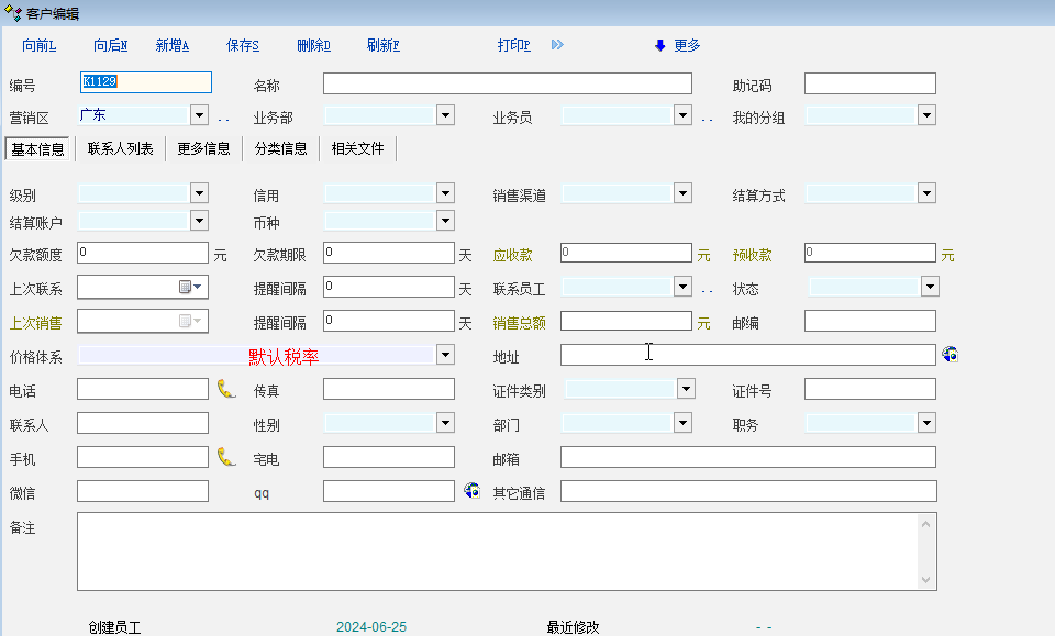 有的客户默认要开票,有的客户完全不需要开票。开票的客户有的要开普票(1%),有的客户要开增值税发票(13%)。如图所示,建议在客户资料中添加客户默认税率并在物资单据中添加绑定客户默认税率功能。类似客户价格体系功能,这样可以更灵活,更切合实际应用场景。
