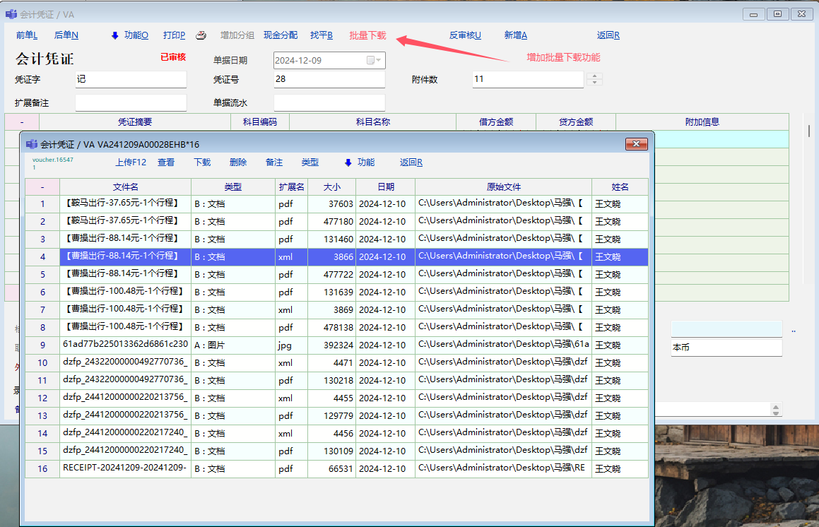 目前单据的相关文件,下载时一次只能下载一个文件,有时候相关文件比较多,需要全部下载时就比较麻烦,建议增加一键下载,或者可以多选下载的功能。