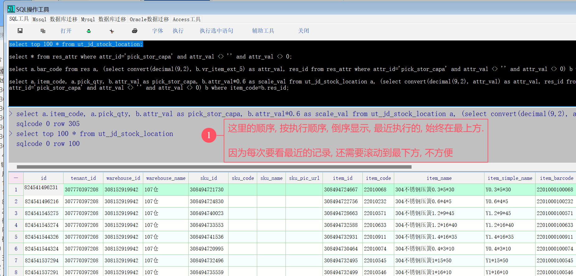 推荐_建议 sql工具执行情况, 倒序显示, 将最近执行的语句 放置在最上方_产供销