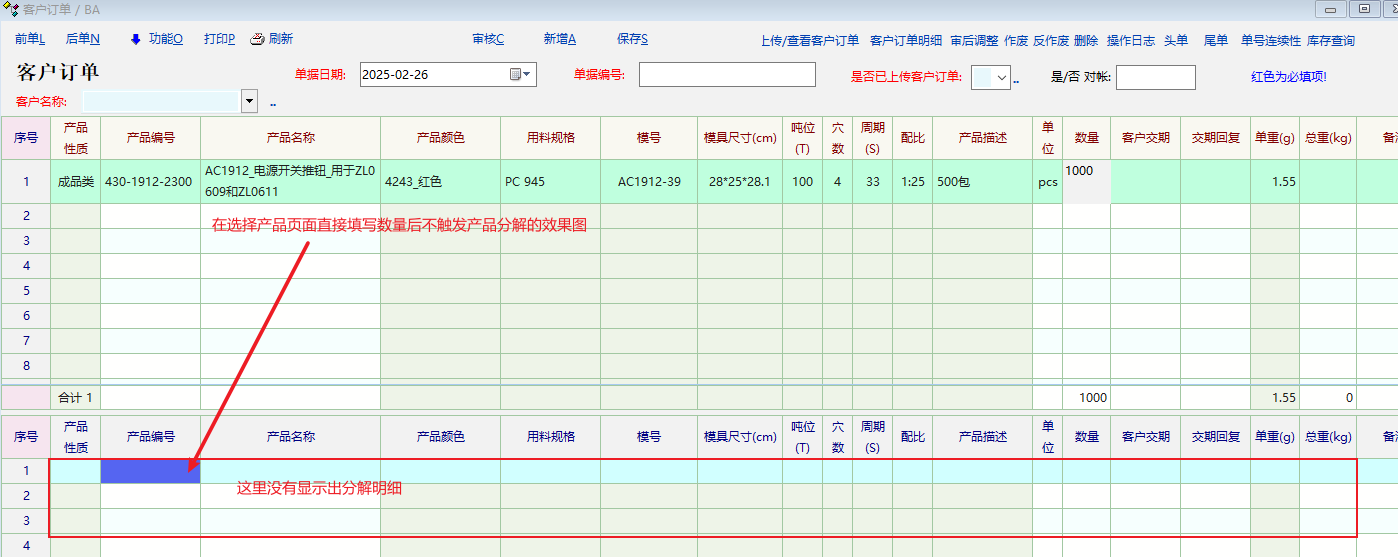 求助_在销售订单的选择产品页面直接录入数量不触发产品分解_产供销