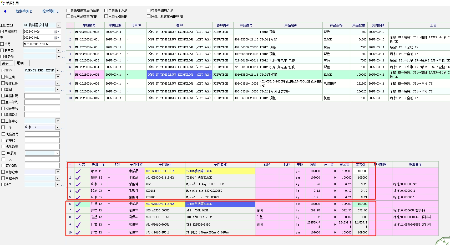 老师,目前我们单据业务规则定义里面转换产品勾选的只允许一个的时候,引用界面的主物资是可以多选的,目前客户是多级BOM,不同层级的BOM是不同部门的半成品加工,做生产工单就是一个部门的半成品物料,有时会同时多选主物资或双击主单据全选所有主物资都引用到一个工单,造成工单开单错误,客户希望能限定只允许引用一个主物资 |