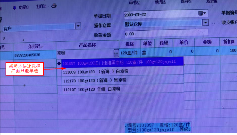 由于用户长期使用旧版本,积累了大量的操作习惯,特别物资单据的产品选择操作。