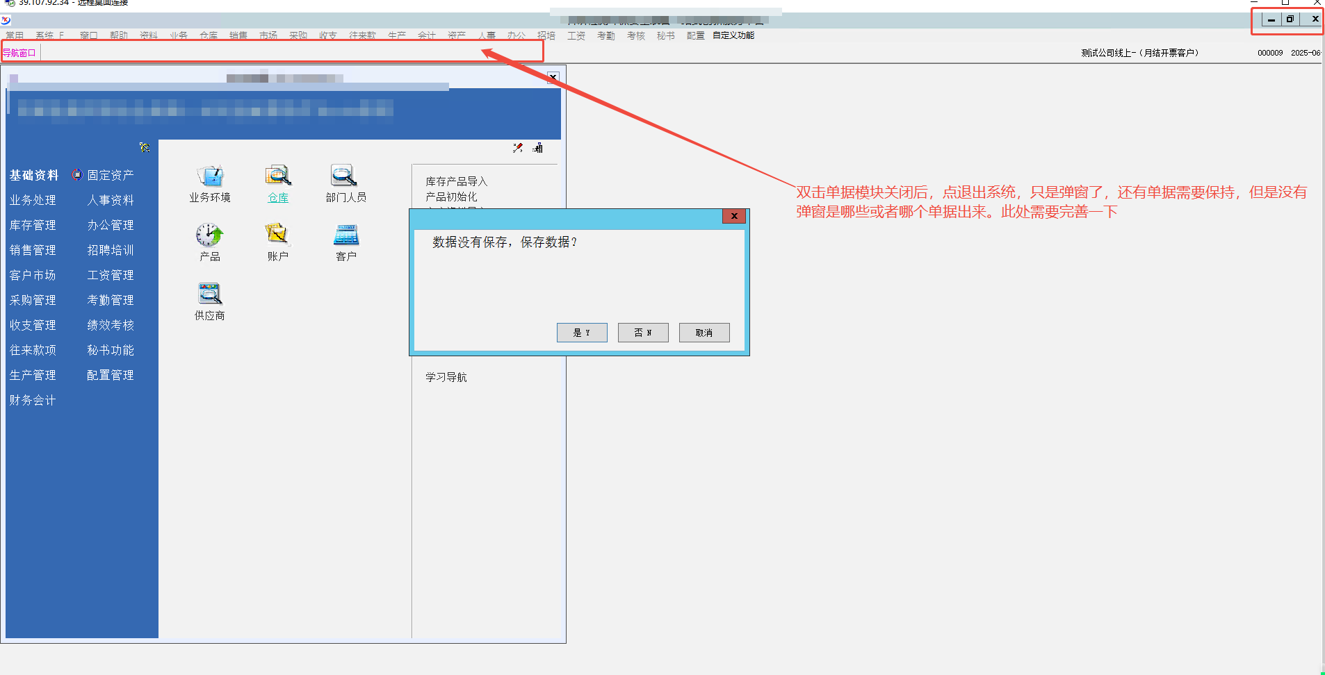 双击是可以关闭,但是退出系统的时候,才提示,该保存的单据,只是提示,但是,没有提示是哪个单据,也没有弹窗提示是哪个单据  。