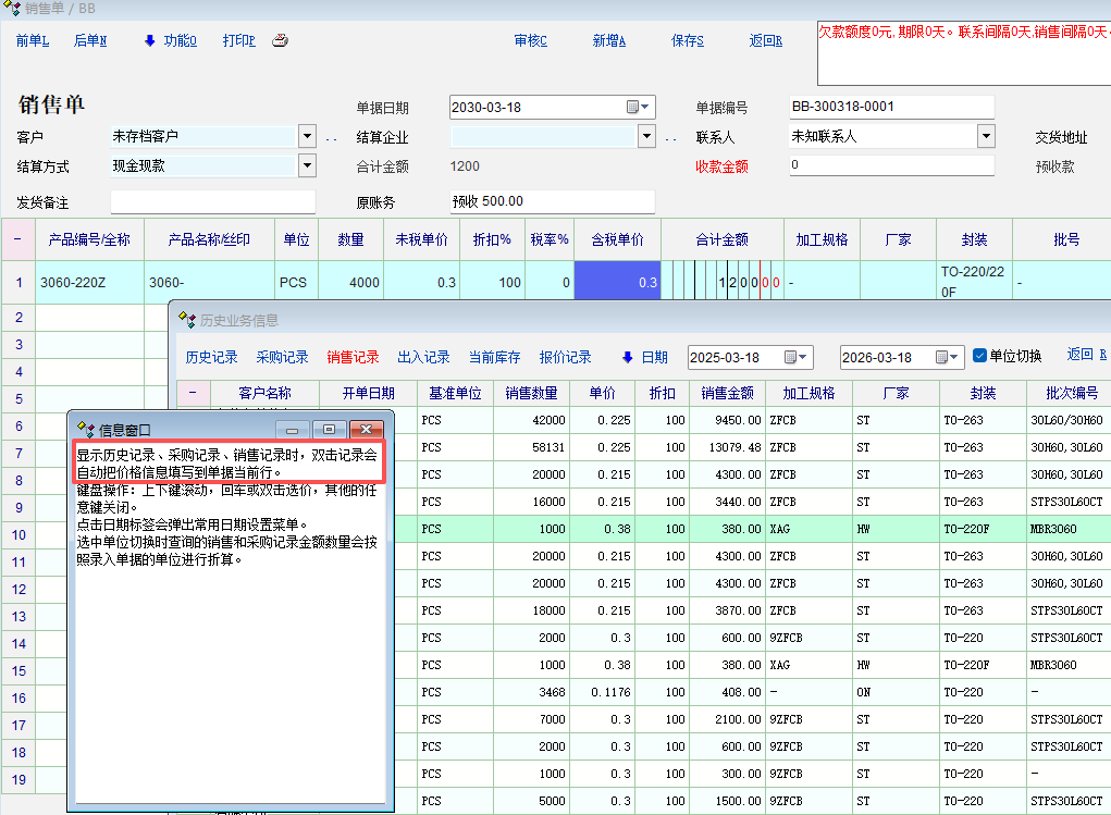 现在通过F8快捷键查询显示历史记录、采购记录、销售记录时,双击记录会自动把价格信息填写到单据当前行。这个功能很快捷方便,建议能同时把批号、行业属性等内容一起填写到单据当前行。同时可以对历史记录进行;多记录勾选。不然只带入一个价格信息功能显得很鸡肋。