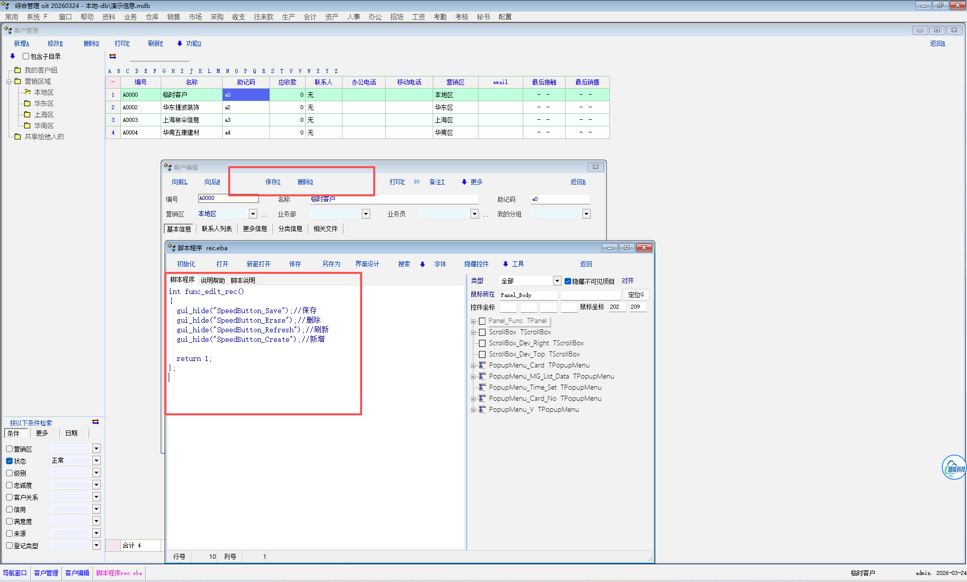 在下列脚本下,客户和人事无法隐藏保存和删除
