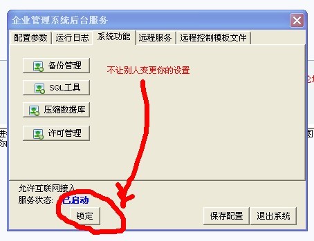 就是有进销存服务器的那台电脑,如果有不相干人员用的话,加上这个功能就没法双击那个图标变更你的配置,这样比较保险点。