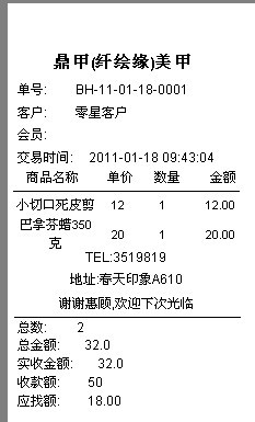 考虑到很多朋友做POS销售没有打印小票的模板,自己设计又比较麻烦,近期老师应我的要求及时增加了“收款额”“应找额”的参数,好东西不敢独食,我之前发过一个模板没有这个完整,新年新气象重新发一个本人正在应用的版本。
