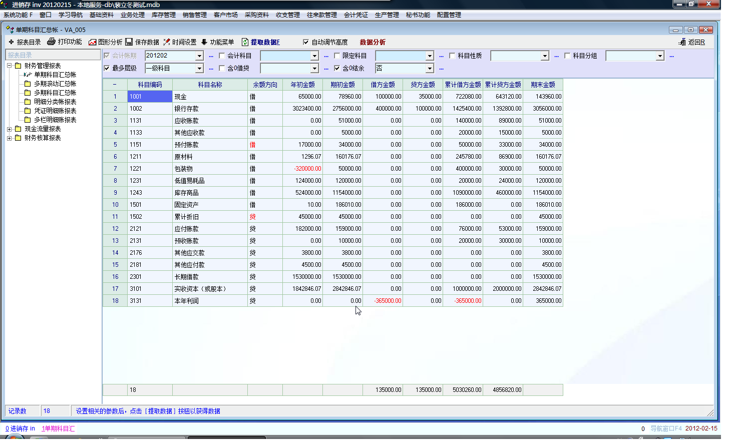 科目余额