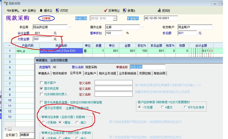现款采购=》操作=》参数及配置=》业务规则定义。