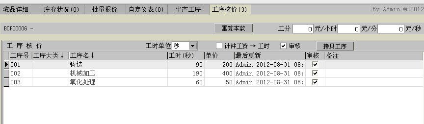 有些零部件加工时有很多道工序,但是系统里面只能添加一种工序,而且有时同一个工序由于物料非标等其他原因,工序的价格不一样,能不能再产品资料里面单独的列一项工序以及工序核价项目,谢谢老师!