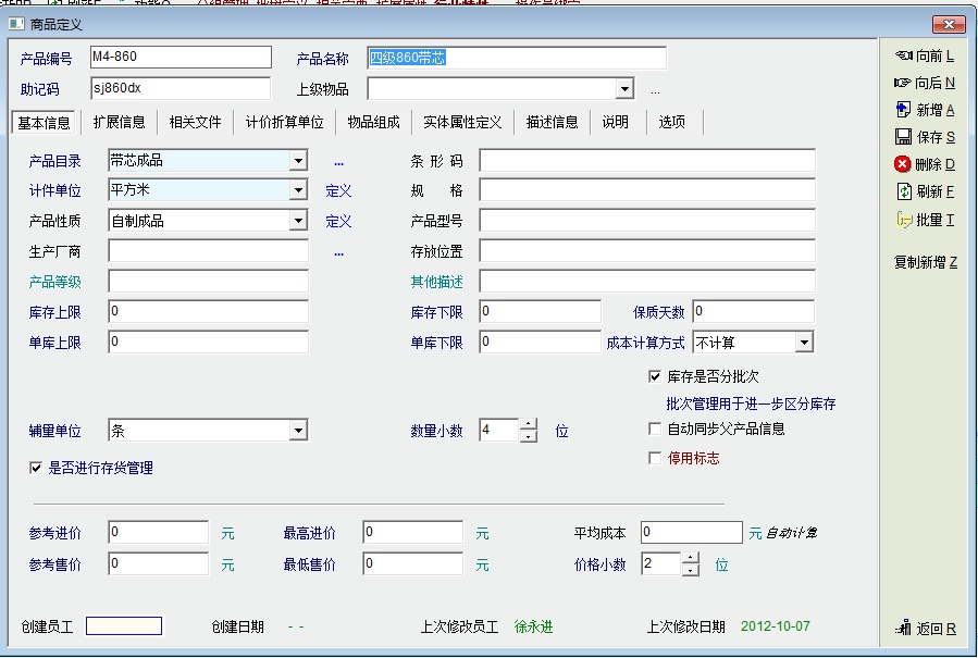 例子:某公司主要产品为棉花,库存里面一包一包存放,每包的重量均不同。库存盘点的时候经常要清点有几包,销售的时候以公斤为单位。此时可启用包作为辅助单位。入库的时候可以填入 212公斤,2包,出库的时候可以填出 300公斤,7包等。