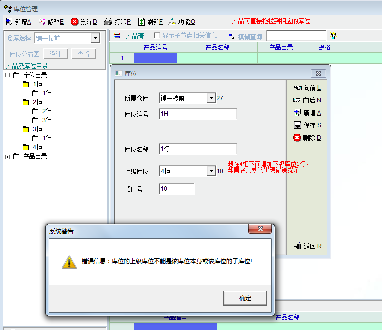 2,这个库位莫名其妙的没法增加下级库位