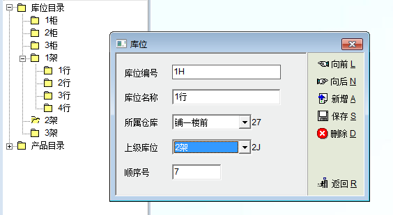 现在在2架下面增加下级库位1行