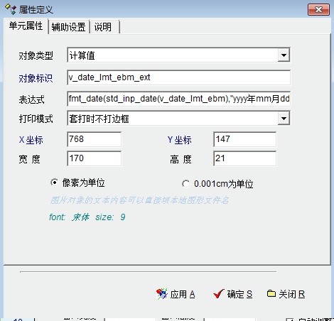 添加一个对象如图,计算表达式设置如下