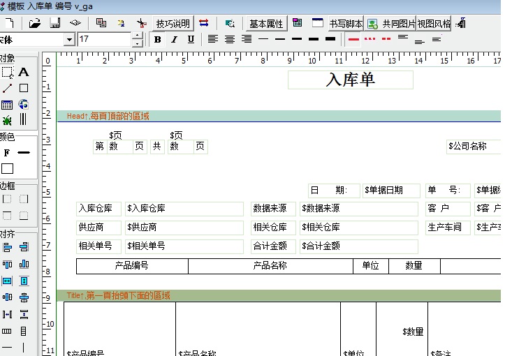 你把产品编号、产品名称。。。那部分移到head区域去, 把入库单3个字移到title区域。