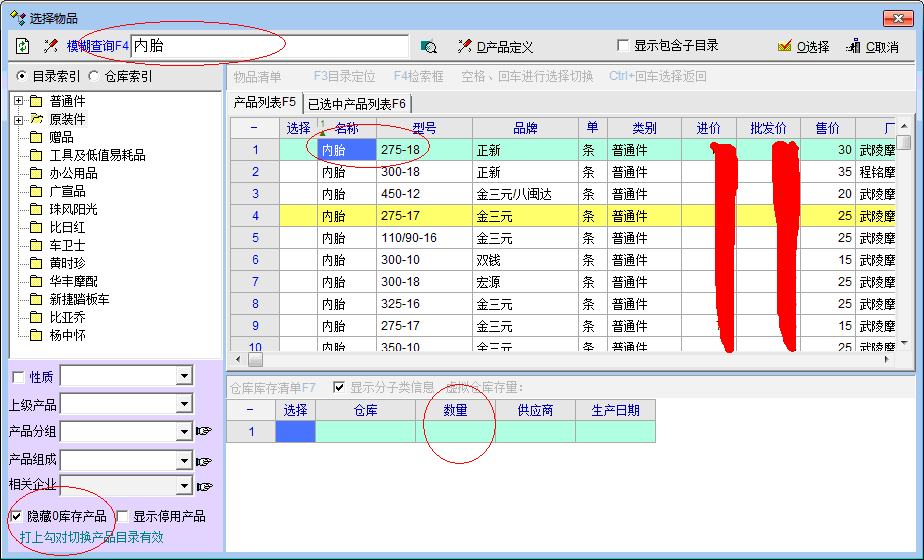 隐藏零库存,针对查询结果无效,在我的实际工作中,有许多同样的产品因为价格和品牌的变动,产生了零库存商品,但每次出库时用查询结果选择商品时会把所有商品都查询出来,造成选择不方便,能否改进。