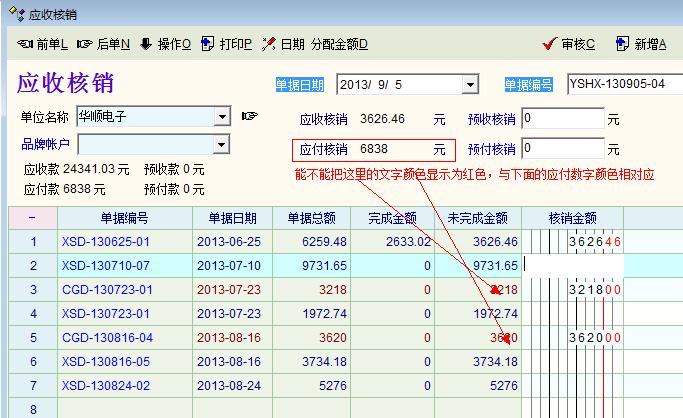 能不能把这里文字颜色显示为红色,这样就能与下面的文字颜色相对应,核销等额金额时就更直观方便了。