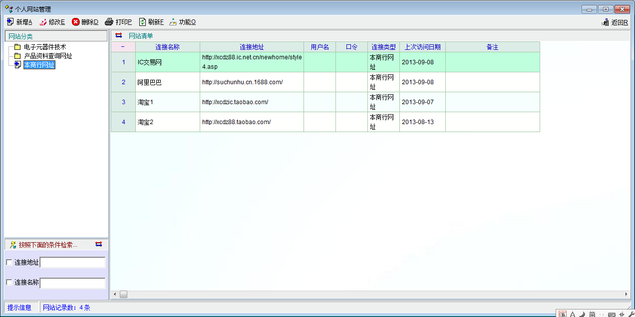 个人网站收藏中添加的网站链接只能自己使用,建议老师添加分享给其他操作员使用的功能。