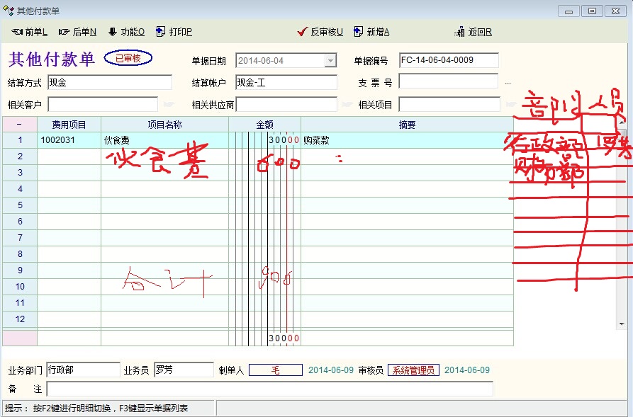 原创_关于其他应付款单中费用分配涉及部门及人员的问题_产供销