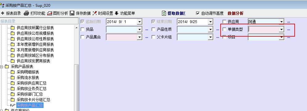 推荐_采购报表》采购按产品汇总》单据类型选项不起作用。_产供销