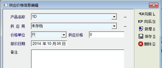 系统中的供应商报价(不限制日期)与询价单应该是同一个概念的,都是记录供应商对产品的报价信息的。但导航界面中只有询价单没有供应商报价单,产品定义中只有供应商报价单却没有询价单,供应商报价单的内容与询价单也互不包容,没有整合在一起。两种实现同一功能的单据同时存在又没有相互整合,既混乱无章,令人无从适从,系统中的供应商报价单除了价格,只提供了一个备注输入,太过简单。建议老师直接用询价单代替供应商报价功能。