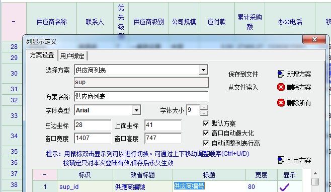 供应商扩展属性没法显示定制,也没法在将供应商扩展属性保存/导出到EXCEL等文件中!