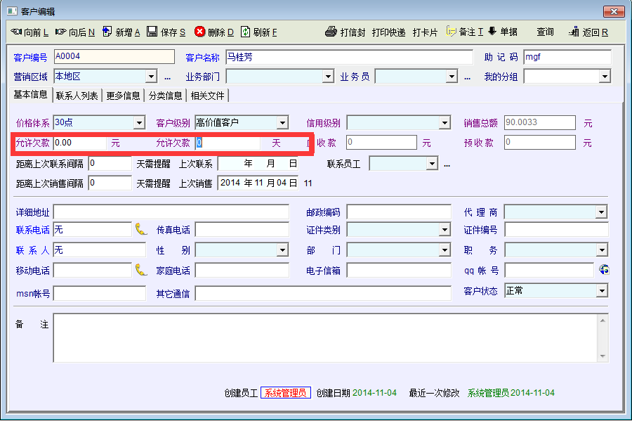 就是客户资料有个信用额度的东西,信用额度是: ---   可以超出 --  %