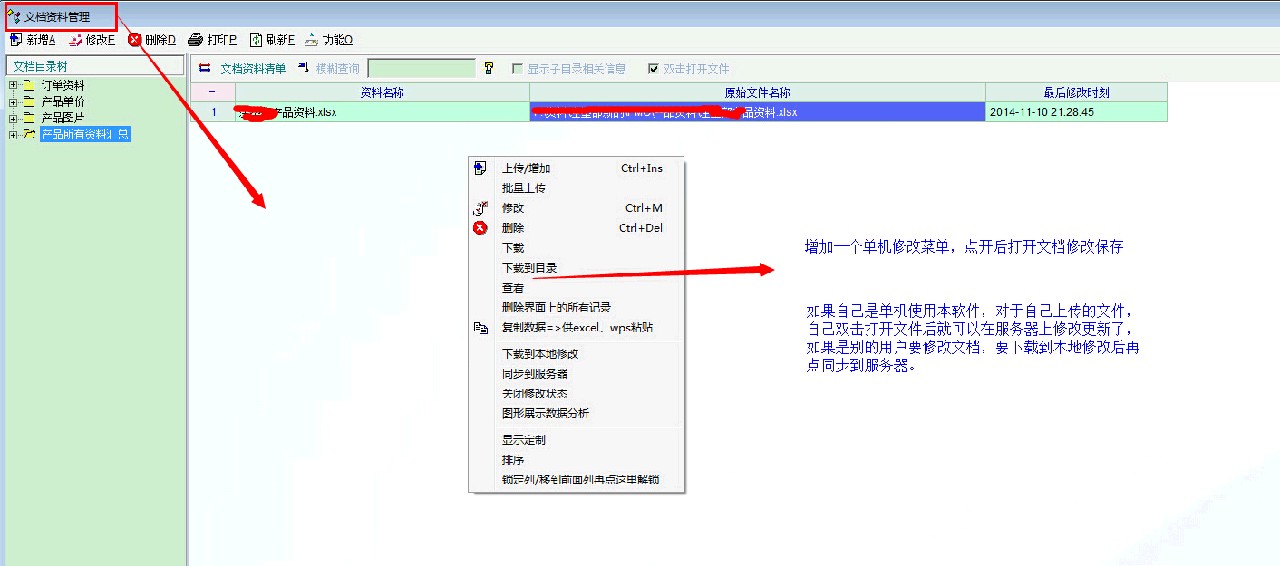文档秘书----》文档管理  文档查看后,对相对应的内容修改后,如果是单机板用户,可以在确认自己修改的东西后,点保存后,文档直接相应的更新,就不必再下载到本地修改后再同步到服务器了。这样对于U盘办公的人,管理自己的文档工作效率提高。