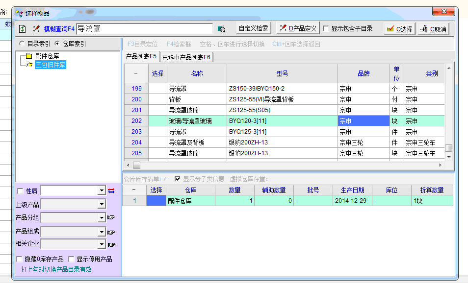 这个建议是有利于快速选择地。 模糊查询现在针对 的应该是产品资料,与库存无关。 库存只显示所选择的仓库中的 所选择的产品 的库存就行。 刚才实际操作,选择仓库检索时,产品界面选择里,只会出现本仓库有的产品的资料。 楼主所说的,应该是指选择仓库检索时,模糊搜索,针对的是现有库存的产品进行模糊匹配。 |
