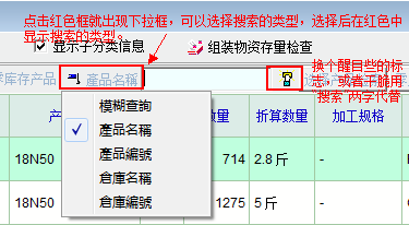 物资当前库存清单搜索的中的搜索类型选择按钮与搜索执行按钮太小,太没有代表性,不是特别注意,根本不知还可以选择搜索类型,我用了几年才偶然发现可以选择搜索类型。问了几个同事,他们竟然也没有发现这个功能,建议给搜索类型与搜索执行按钮换个醒目些的图标,最好按照图片所示,进行一些改造。