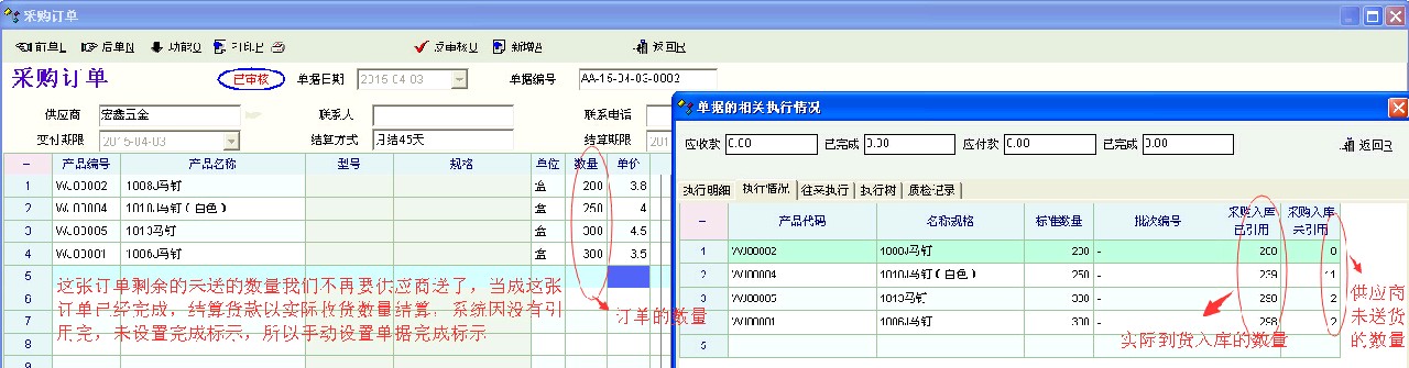 请教一个问题,设置单据引用流程定义:上级单据 采购订单   下级单据库存管理 入库单  ,因为有的供应商送货时没完全按数量或点错送货少1.2个是正常的事,这样我们就算这订单已经完成了,所以入库单 就没有引用完采购订单的数量,未引用剩余1.2个,这张单系统就没有自动设置完成标志,操作员手动设置单据完成标示后,在做入库单时,选择相关单据还会显示出这张订单来,有比较多这样的订单,容易造成混乱,如何设置这样手动设置单据完成标示后的订单也不再显示在相关单据引用里呢?