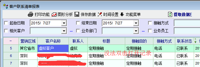 客户联系清单报表没法在报表记录区通过双击快速打开、查看记录详情。