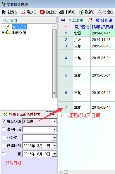 4、在商业机会的检索条件中添加“预期购买日期”检索条件。