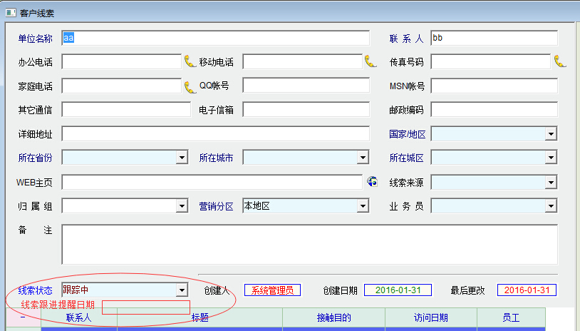 为客户线索中的接触记录添加接触状态与计划日期,就像客户接触记录一样。当接触状态为未接触时,输入计划日期,如果超过计划日期未联系,则在事务提醒模块中进行提示或者在客户线索模块中进行提示,催促业务员跟进联系。