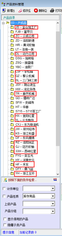 公司是定单式生产,一个客户和产品建一个目录,随着时间的增长,许多客户已经不存在了,产品也已停用,但是每次进入产品资料管理或者产品选择界面,左侧仍会显示那些已经不用的目录,造成选择上的不便,如果能够改进,善莫大焉~!