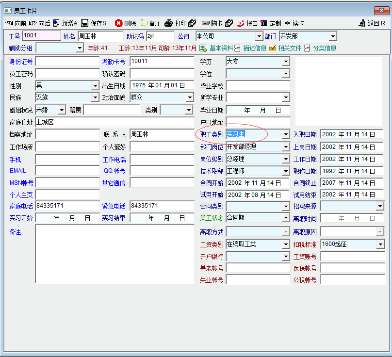 系统中记录的人员身份类别,一类特殊群体“实习生”,因尚属于在校生,来公司参与社会实践,并不是公司的正式员工,由于公司于高效有合作,每年都会安排大量的实习生入职,且部分实习生毕业后直接留在公司,转为正式员工。
