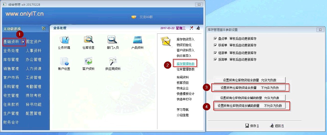 按照仓库的正常运作是先入库后出库,你所提到的问题只是入库单和出库单的操作顺序问题。在系统中可以限制库存为不负数的的配置选项,设置后,只要是出现负数库存,就不能审核单据。具体设置如下图。