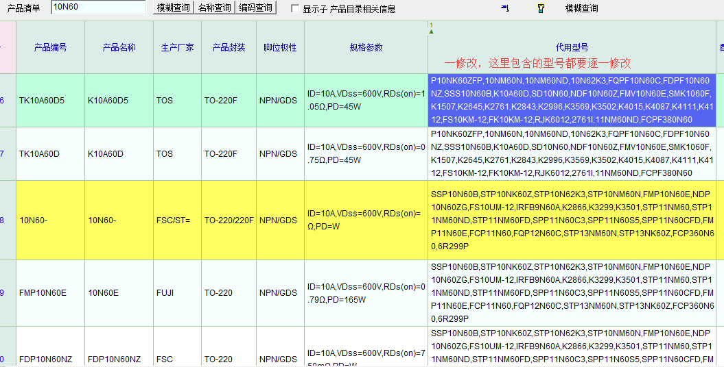 我们是做电子元器件的,同一个产品型号,经常有许多可以代用的型号,它们性能、参数、封装等相同或者相似。在实际使用中,我们是把产品描述一栏用来存放代用型号内容(代用的型号一般比较多,需要较多的字节,产品描述可以输入的字节比较多)。把可相互代用的产品型号当做一个集合A,集合里面包含了a,b,c,d...等,如果集合包含的元素发生了改变(比如原来是包含a,b,c,d,现在扩展到a,b,c,d),那么原来包含在集合A中的所有产品a,b,c中的产品描述一项就要全部修改成为a,b,c,d。如果有批量修改功能,那就相当方便了。 |