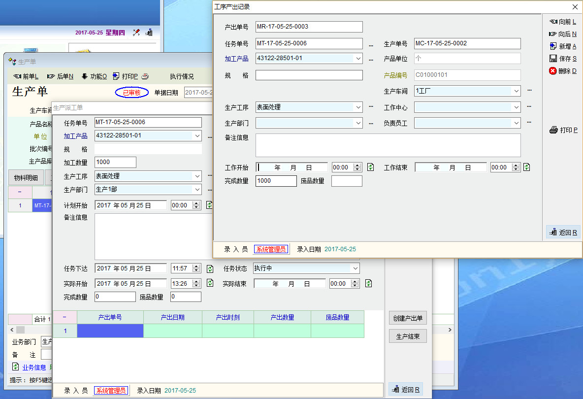 1)应有个防错机制。未创建产出单,不能生产结束;未创建产出单,确认生产接受后无法修改。