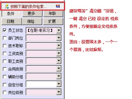 建议增加”清空值“按钮,一键 清空 已经 设定的 检索条件,方便重新定义检索条件。