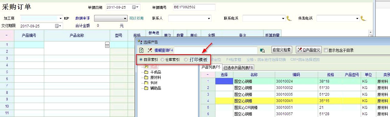 因此,建议老师在打印模板的选择处,增加一个检索界面,可以根据关键字进行检索定位,像选择产品资料那样,方便操作。这样在选择打印模板和修改打印模板时能方便查找。
